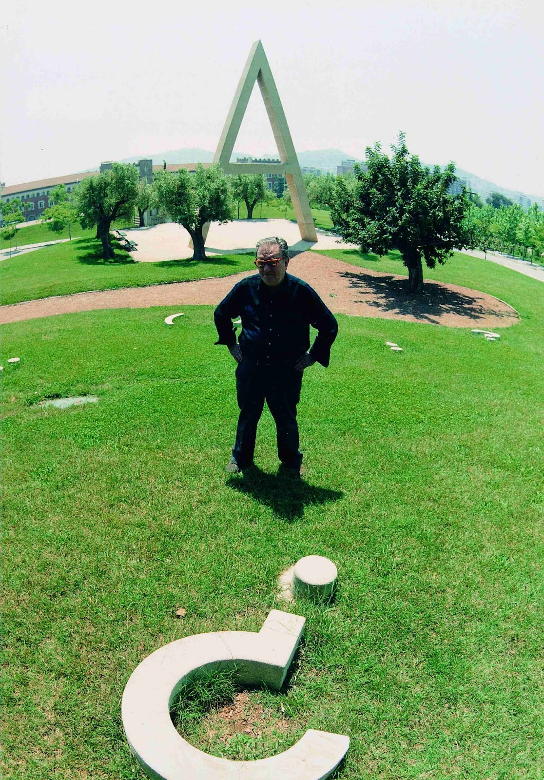 Joan Brossa dentro de un "poema visual transitable". Circa 1990. |